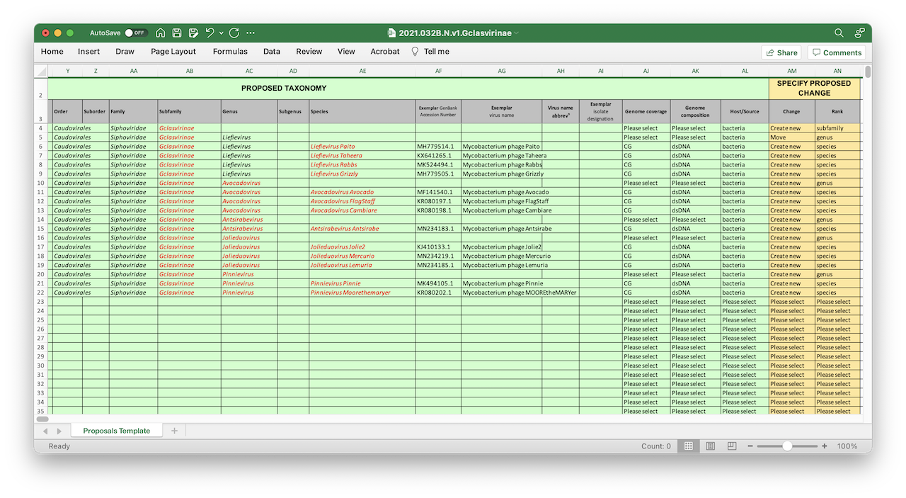 Templates for submitting proposals are available from https://ictv.global/proposal_templates/. These 2021 templates MUST be used for all submissions. Please download all four files and read the Help file for detailed information on the submission process.