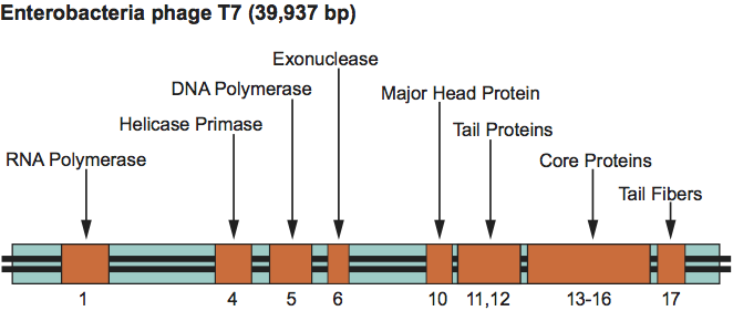 Figure 8 Simplified genetic map of Enterobacteria phage T7 (T7).