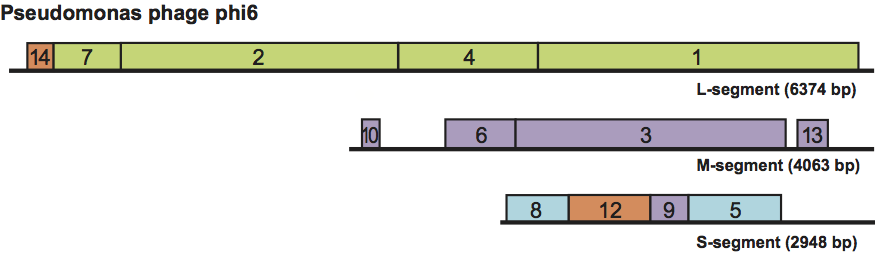 | Pseudomonas phage phi6 | [L: M17461; M: M17462; S: M12921] | (phi6) |